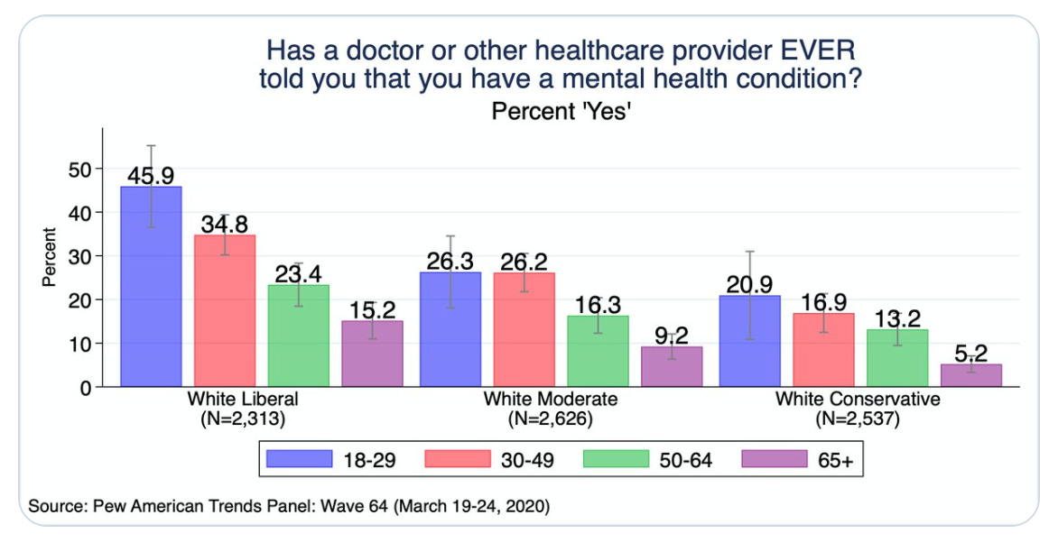 These diagnostic trends matter because they track closely with the ideological patterns discussed earlier. Rising rates of depression and anxiety do not merely coexist with radicalization; they shape receptivity to moral frameworks that emphasize harm, vulnerability, and external sources of suffering. An ideology that treats distress as evidence of moral awareness and attributes psychological pain to systemic injustice is especially appealing in a population experiencing historically high levels of clinically recognized disorder.