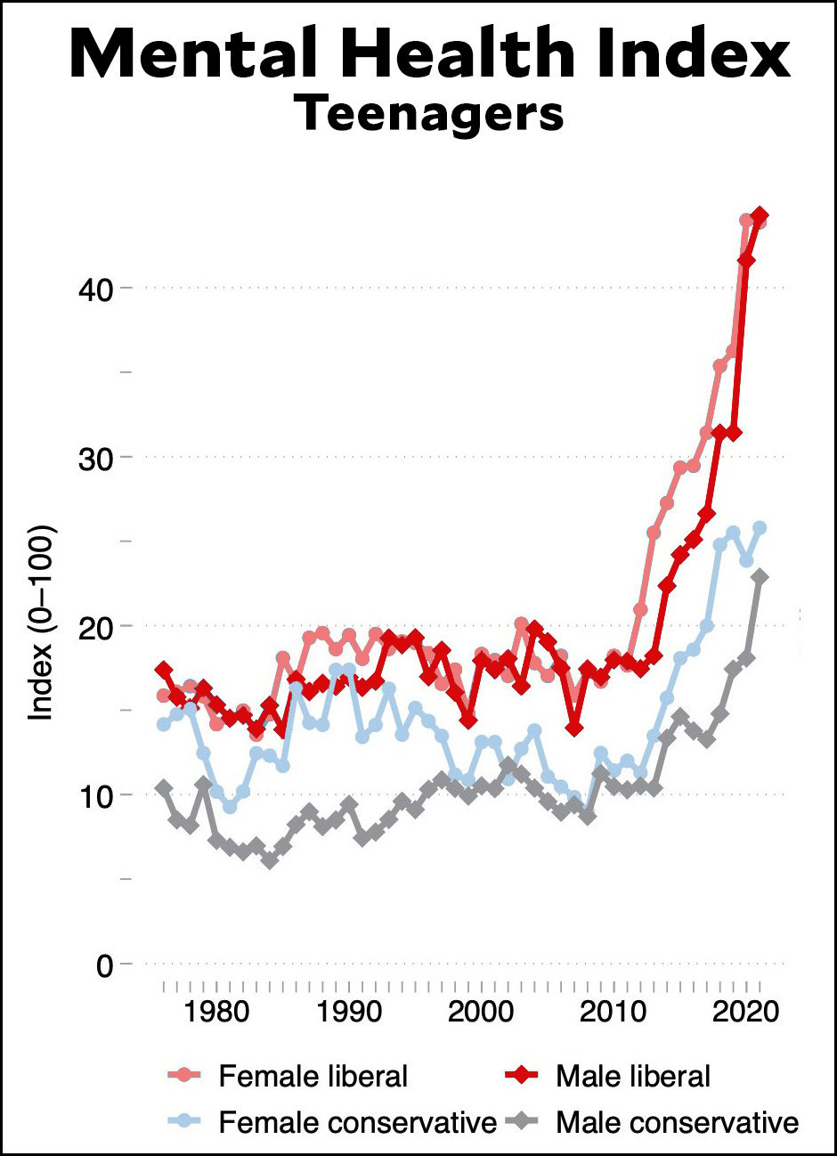 This helps explain a central paradox of the last decade: rising ideological intensity alongside worsening mental health among the very groups most committed to progressive moral frameworks. The ideology does not fail despite this outcome; it absorbs it. Continued distress is interpreted as confirmation that the world remains unjust and that vigilance must increase.