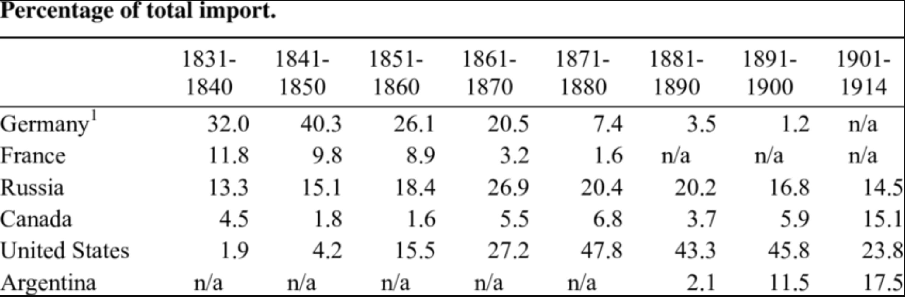 Industrial Europe depended on cheap grain. Between 1870 and 1910, Britain imported tens of millions of bushels of wheat annually from the United States, Argentina, and Russia. Germany also imported heavily by 1900. By 1913, over one-third of Europe’s wheat came from overseas.